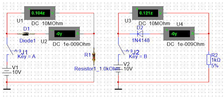 二極管加反向電壓的仿真解析二極管加反向電壓的Multisim仿真及分析斷開A、B開關(guān)閉合A、B開關(guān)先通過A、B鍵使J1、J2兩個開關(guān)打開。打開電源開